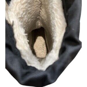 Minor fabric scratch on the outer side, facing inward toward the other boot, barely noticeable