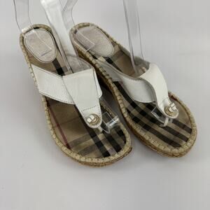 Burberry Nova Espadrilles Wedge Sandals Women's Size 40 White Leather Thong