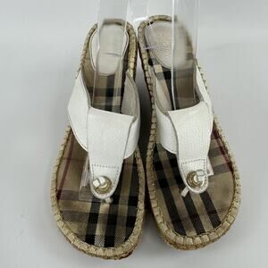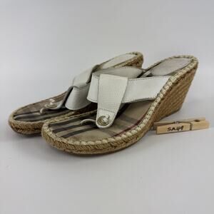 Burberry Nova Espadrilles Wedge Sandals Women's Size 40 White Leather Thong READ