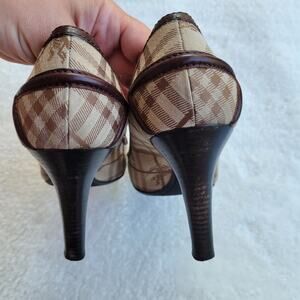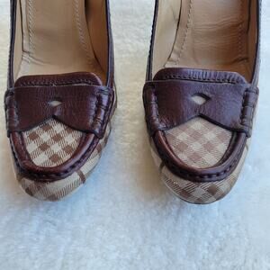 very good preowned condition. the soles weren't redone - the shoes were manufactured like that. some wear on a footbed, some scratches on the heel.