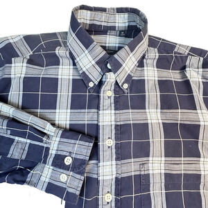Burberry Of London Shirt Mens Medium Blue Nova Check Plaid Long Sleeve Made USA