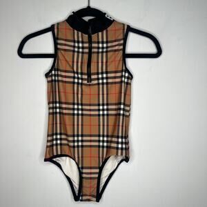 Burberry One Piece Swimsuit Beige Stripe Girls Size 12Y