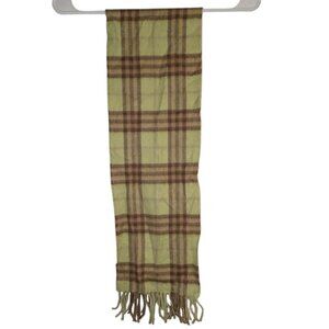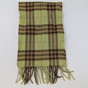 Burberry Pastel Sage Nova Check Classic Plaid Fringe Small Cashmere Scarf Soft