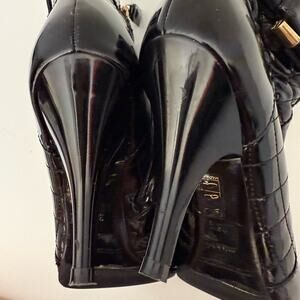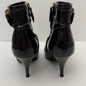 Burberry Patent Leather Quilted Heeled Booties Ankle Boots Black 38.5 / US 8.5