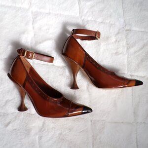 Burberry Patent Leather Scallop Detail Pointed Toe Pumps, Retro Party Event NIB