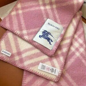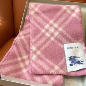 Elevate your style with this Burberry pink check cashmere scarf. Crafted from soft cashmere, it features the iconic check pattern in a lovely pink and white combo. The classic Burberry Equestrian Knight Design label adds a touch of luxury. Perfect for staying cozy while making a chic fashion statement. Comes with the original Burberry packaging. A timeless piece for any wardrobe!