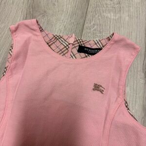 Elegant pink dress with classic Burberry plaid lining. Perfect for any occasion.
