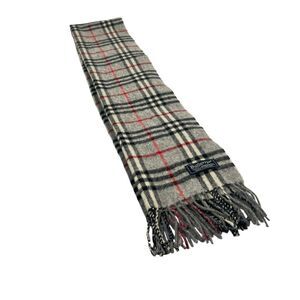 Burberry Plaid 100% Lambswool Classic Women's Gray Multicolor Fringe Wrap Scarf