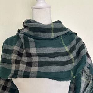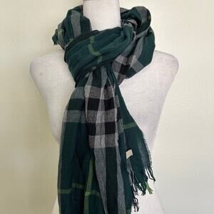 Burberry Plaid Checkered Scarf Green Black Merino Wool Wrap Unisex OS Winter