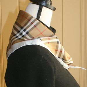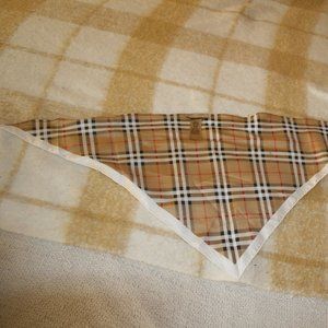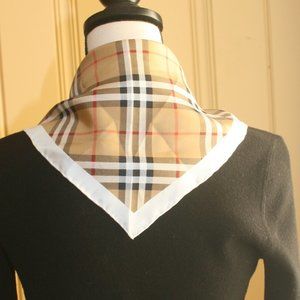 Classic Burberry plaid scarf. Features beige and black tones. Perfect for any outfit.