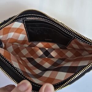Burberry, black, yellow and white plaid, shoulder bag. Two Card holder pockets. Removable stra.