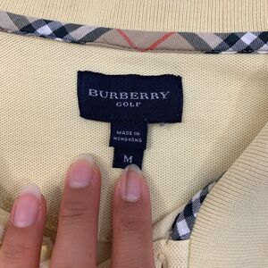 BURBERRY POLO SHIRT MENS M MEDIUM DAFFODIL YELLOW COTTON GOLF PLAID TRIM *READ