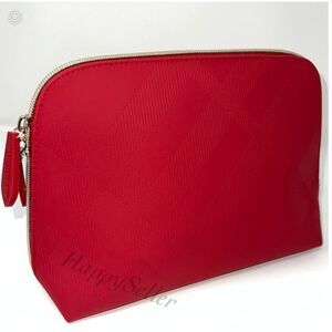 Cosmetic Bag with the Burberry plaid embossed design. Very spacious, and zippers open all the way down on both side forming super wide opening! Burberry logo zipper-pulls. PU Leather Fabric which is very easy to clean and wipe down. Comes in a white box.