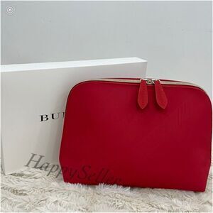 Burberry Pouch Cosmetic Bag Makeup Case Plaid Embossed Clutch Evening Purse New