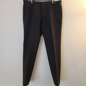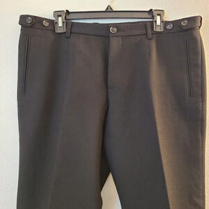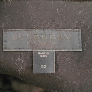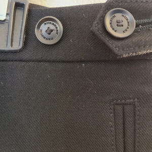 Burberry Prorsom Black Wool Trouser Pants. These pants have a slim fit, are partially lined in the front, have a hidden button fly, adjustable button waistband and belt loops. They are a thick wool and very good quality. They are in excellent preowned condition.