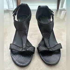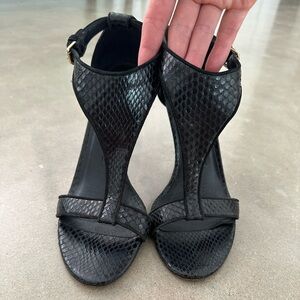 Great used condition. A few scratches and a little wear on heels (pictured). 3.75 inch heel.