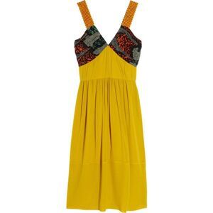 Burberry Prorsum Yellow Green 100% Mulberry Silk Dress NWOT