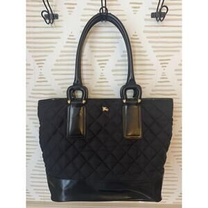 Burberry Prosum Quilted Nylon Black Leather Gold Hardware Tote