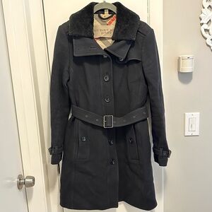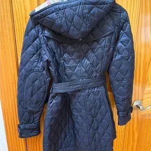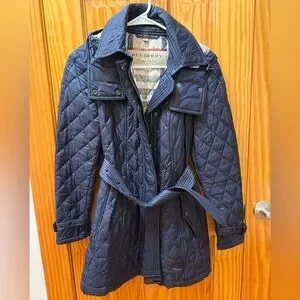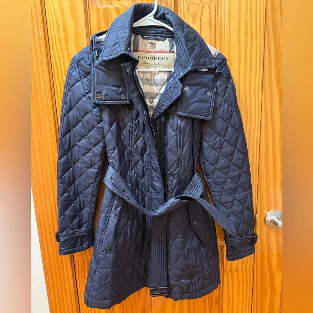 Burberry Quilted Navy Belted Trench Coat with Signature Lining