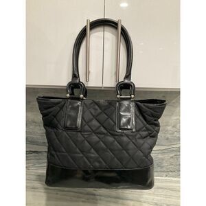 This Burberry tote bag features a classic quilted design with sturdy leather trim and handles. It is ideal for daily use or special outings.