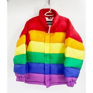 Burberry Rainbow Striped Feather Down Puffer Jacket Size 44