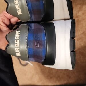 Burberry Ramsey Check Blue Gray Men's Low Top Sneakers Size 44