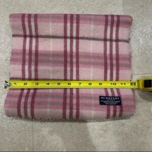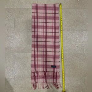 Chic Burberry scarf with pink and cream check pattern. Crafted from soft merino wool and cashmere blend. No stains or holes. Elevate your wardrobe with this feminine piece.