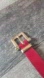 Elegant Burberry belt. Rich red leather. Gold-tone buckle. Stylish and sophisticated.