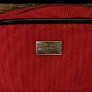Elegant red Burberry cosmetic pouch. Features a sleek design with a metallic logo accent. Perfect for organizing essentials. New condition, still wrapped in original packaging. No call outs. Perfect to add daily essentials and create a bundle for discounted price!!!