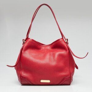 This absolutely stunning Burberry Red Pebbled Leather Canterbury Tote Bag is an instant classic. A great example of Burberry craftsmanship, this bag is crafted out pebbled leather with hand-painted edges and polished goldtone hardware. Ideal for your daily essentials, this tote also has a center clasp closure that can be unhooked to reveal a more spacious tote. Retail price $1095.