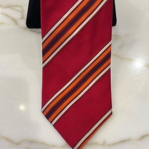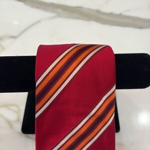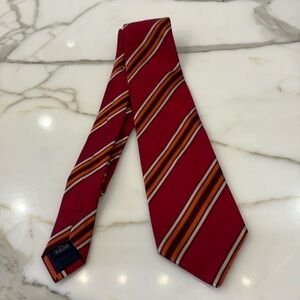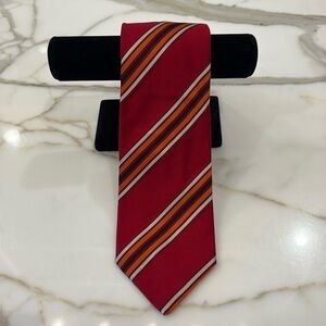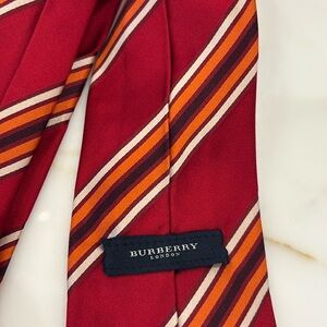Burberry Red Orange Striped Tie—GREAT!! Beautiful Colors & Design—100% Silk—Has some small faint spots. Needs some minor cleaning. Otherwise, in great condition!! Vintage?
