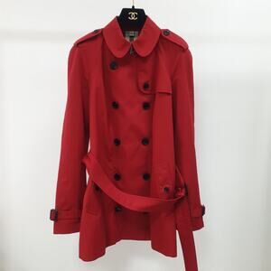 Step out in style with this stunning Burberry Brit Red Trench Coat. This classic piece is in very good condition, showing minimal signs of wear, ready to elevate your wardrobe.