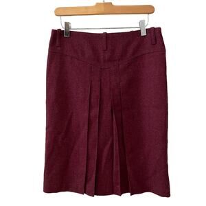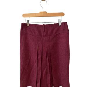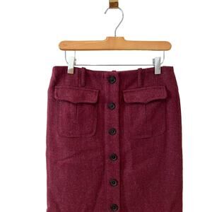 Burberry Red Wool Button Front Military Style Tweed Pencil Skirt 4