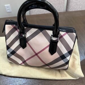 Spacious and captivating, this Boston bag is from Burberry. It has been crafted from their signature Nova Check coated canvas and accented with patent leather trims and black-tone hardware.