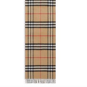 Impeccably crafted from supple cashmere, this fringe-tipped scarf makes a must-have accessory in an instantly recognizable check.