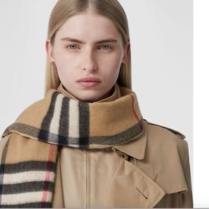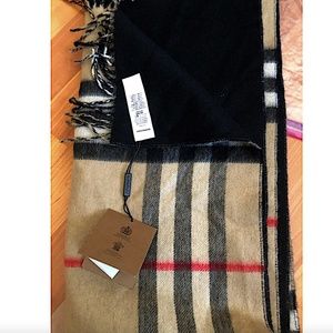 Burberry Reversible Giant Check To Solid Cashmere Scarf