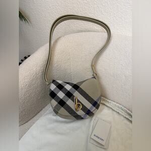 This Burberry Rocking Horse Bag is a sophisticated statement piece crafted in Italy from premium calf leather and lambskin. Combining heritage craftsmanship with modern elegance, it features a structured silhouette and a versatile adjustable strap, allowing it to be worn as a shoulder or crossbody bag. The subtle Burberry detailing adds a refined finish, making it a timeless addition to any wardrobe.