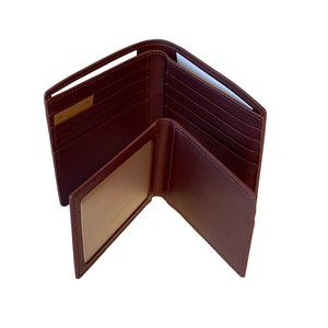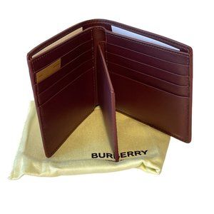 Burberry Ronan Oxblood Leather Logo Bifold Wallet with removable ID wallet