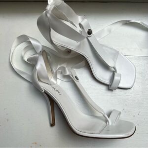 Burberry STEFANIE OPEN TOE THONG ANKLE T STRAP Leather Sandals White EU 37