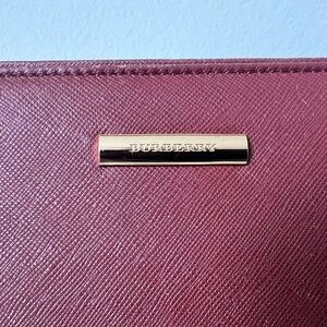 Elevate your style with this stunning authentic Burberry Saffiano leather handbag in a rich burgundy hue, featuring the iconic Nova Check lining.
