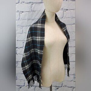 Burberry Scarf Navy Check 100% Lambswool Scotland 52" x 11.5"