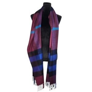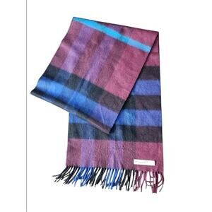 Burberry Scarf Plaid Check Multicolor 100% Cashmere Scotland Rectangle Scarf