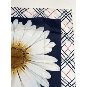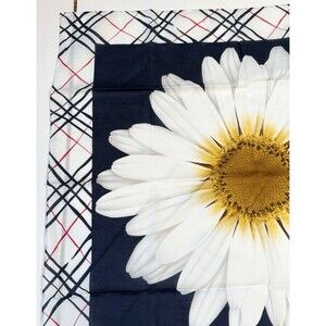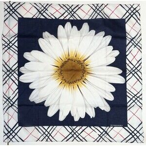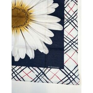 Burberry Scarf w/ Large White Daisy White Navy Red Nova Check Border Floral