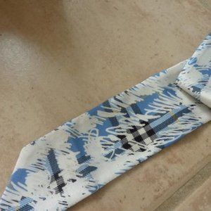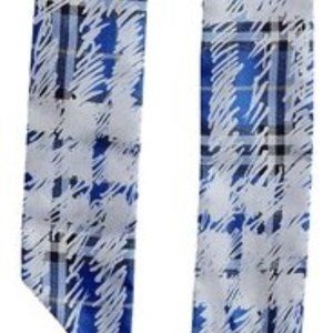 Scribble Check Silk Twill Slim Scarf, Light Blue