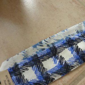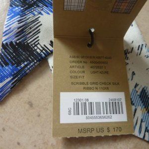 Burberry reversible scarf in contrasting scribble check print. Tie the slim accessory at the neck, at the waist as a belt, or attach to a tote for a bright accent.