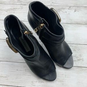 Burberry Sharnford Ankle Boots Open Toe Booties Buckle Leather Heels 38 1/2