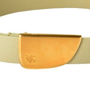Burberry "Shield Split EKD" Hunter Gray Leather Buckle Decorated Belt Sz S