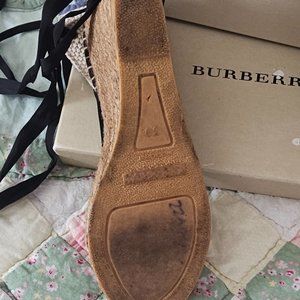 Worn a couple of times. Espadrille sandals 3 inches. Black lace straps. Sooo cute. Comes with dust bag and box.