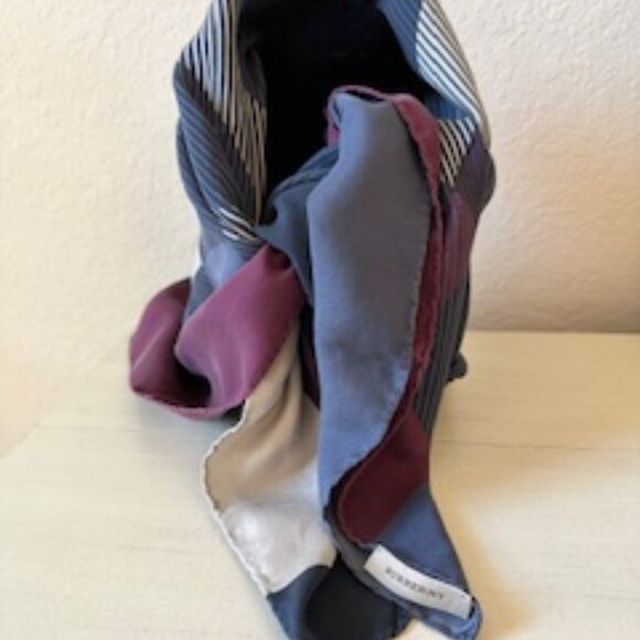 Gorgeous Burberry Silk Scarf in grey/blue/burgundy; 33" x 33" in good vintage condition; perfect for any time of year and selling at an excellent price!!