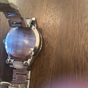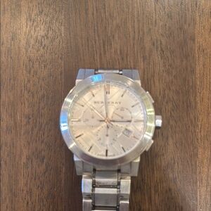 Elegant Burberry watch with a silver metal band. Cream dial with subtle branding. Perfect for any occasion.